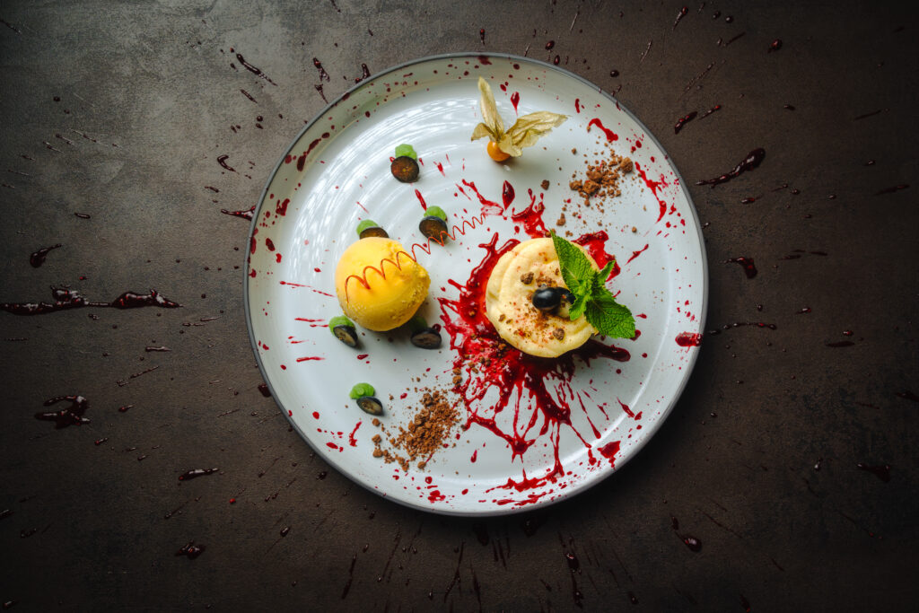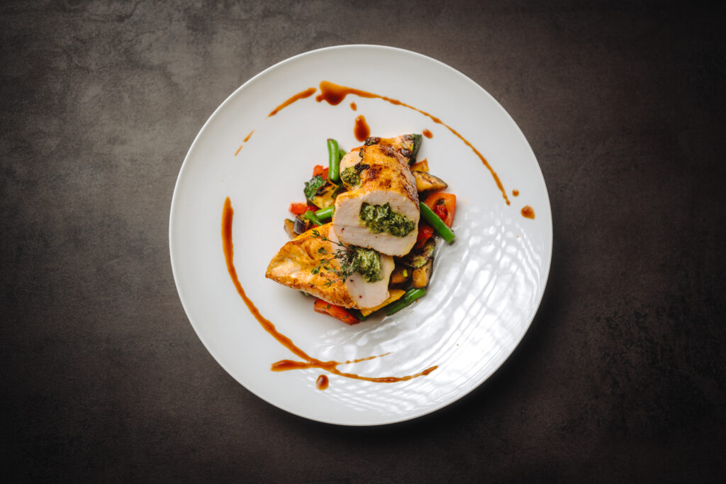Salzwiesenlamm mit Bärlauchrisotto, Kirschtomaten und Oliven. Bärlauch und Spargel sind die saisonalen Zutaten im Frühjahr. Zum Sankt-Martinsessen ist der Gänsebraten vom Hofgut Ritzmann mit Rotkohl, Kartoffelklößen und Pfälzer Maronen Pflicht. Naschkatzen kommen auf ihre Kosten beim lauwarmen
