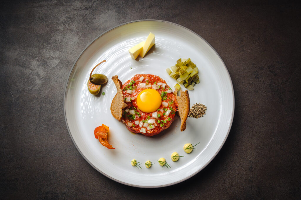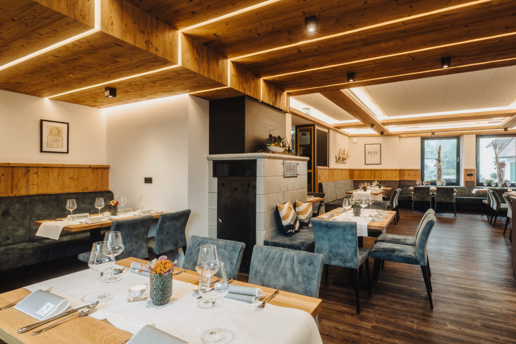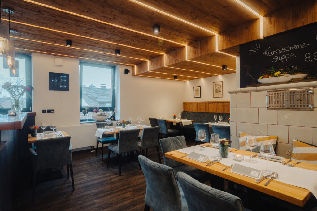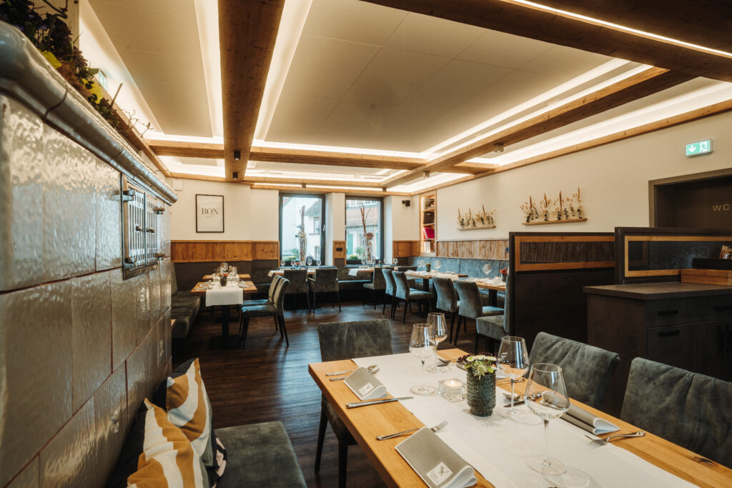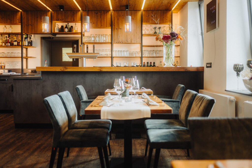 begonnen und die Welt bereist, bevor er mit seinem Bruder Armin Kraus Junior, seines Zeichens Metzgermeister, die Geschäfte in Otterberg übernahm. Beide verwenden ausschließlich Produkte aus der Region. Kurze Anfahrtswege und Saisonalität sowie der Kontakt zu den Bauern und Produzent*innen ist ihnen ein wichtiges Anliegen. Sie wollen wissen, woher die Produkte kommen, die in ihrer Küche und schließlich auf den Tellern ihrer Gäste landen: Das Geflügelfleisch wird vom Hofgut Ritzmann in Winnweiler-Hochstein bezogen, das Gemüse kommt von den Gebrüdern Ehret und das Wild aus dem Otterberger Wald.