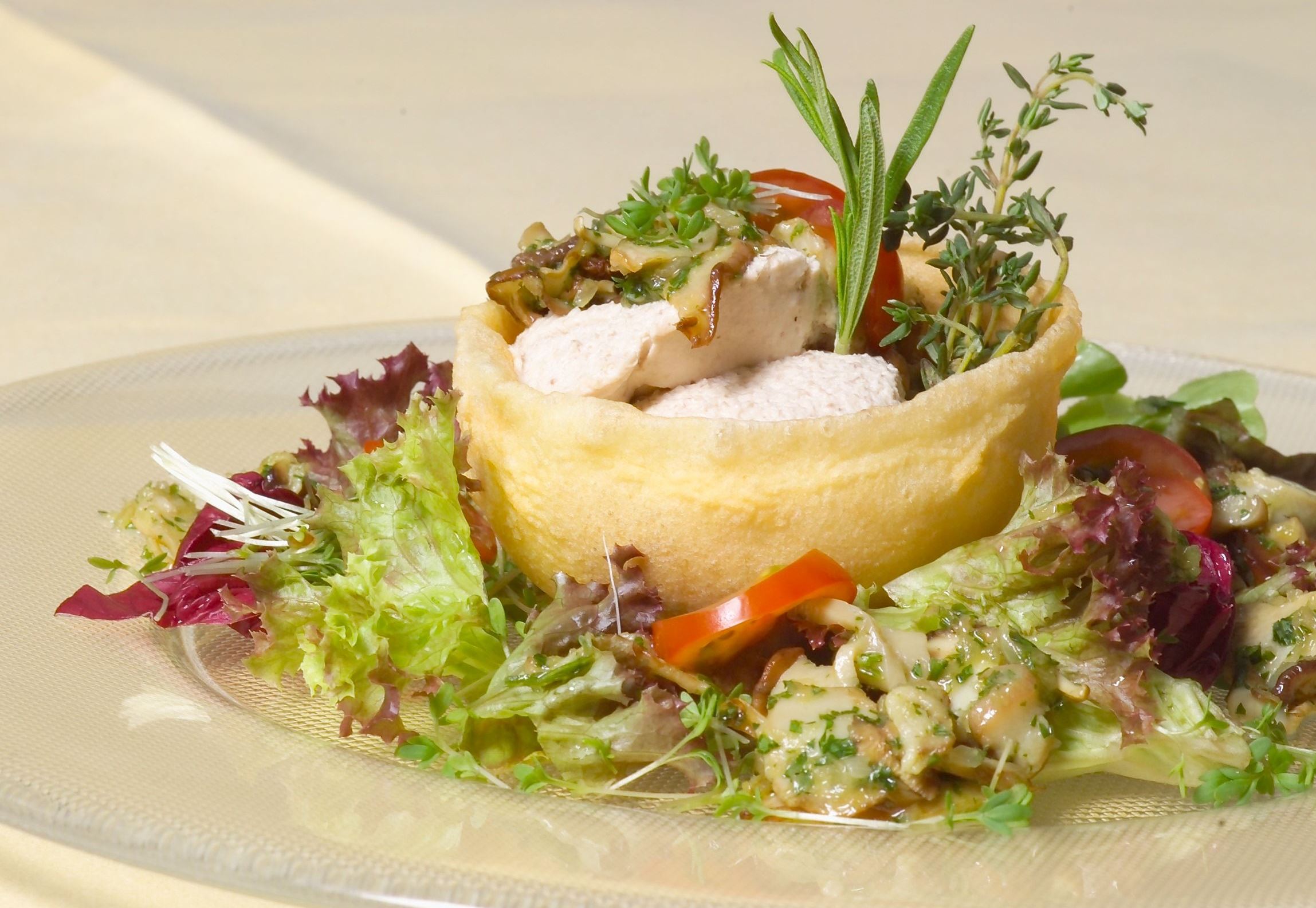 Auf der umfangreichen Speisekarte finden sich als Vorspeisen Quiche mit Spinat und Feta, ein Blattsalat und ein im Weckglas serviertes Crèmesüppchen von frischem Bärlauch. Hauptgerichte sind ein Filet vom Simmentaler Rind mit Sauce Béarnaise und Kartoffelecken oder frischer Pfälzer Stangenspargel mit paniertem Kalbsschnitzel, Sauce Hollandaise oder zerlassener Butter und Schwenkkartoffeln. Das vegetarische Süßkartoffelgulasch mit Sojacrème wird von Reis begleitet. Tagesaktuelle Gerichte offeriert die Tageskarte. Auf der ausführlichen Weinkarte mit offenen Weinen stehen vereinzelte Bioangebote, im begehbaren Weinschrank Bioweine der Nahe, der Pfalz, aber auch aus Italien und Frankreich.