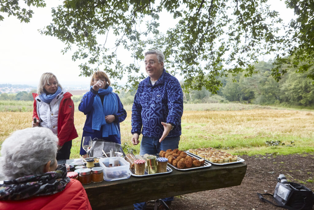 Es folgte eine kulinarischer Wildküche in freier Natur, am Tisch der Gemeinschaft in Enkenbach; kalte und gegrillte Wildgerichte, zubereitet von Koch Andreas Zink und Jäger Markus Hoffmann.